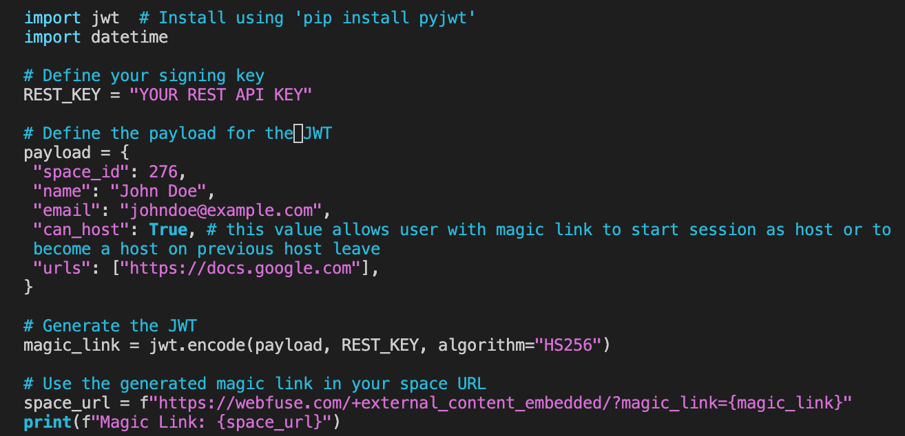 One way to launch such a session is by generating a magic link, which creates a fully virtualized session with its own randomized domain.
