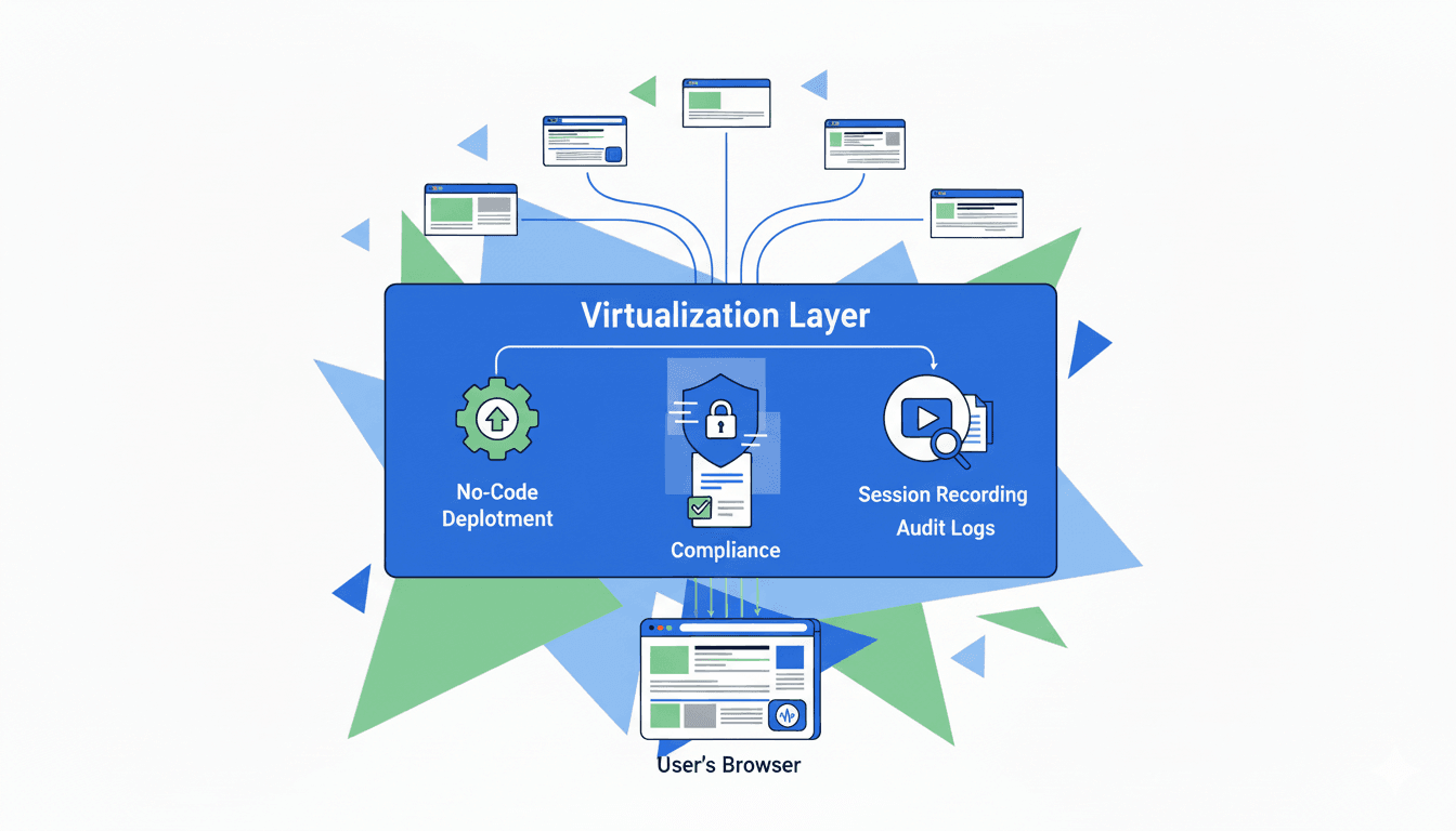 A virtualization layer is an intermediary system that sits between the user's browser and the target web application. Instead of the user accessing the website directly, they connect to a platform that, in turn, manages the interaction with the site on their behalf. This platform creates a secure, controlled sandbox around the original website, effectively wrapping it in an interactive overlay.