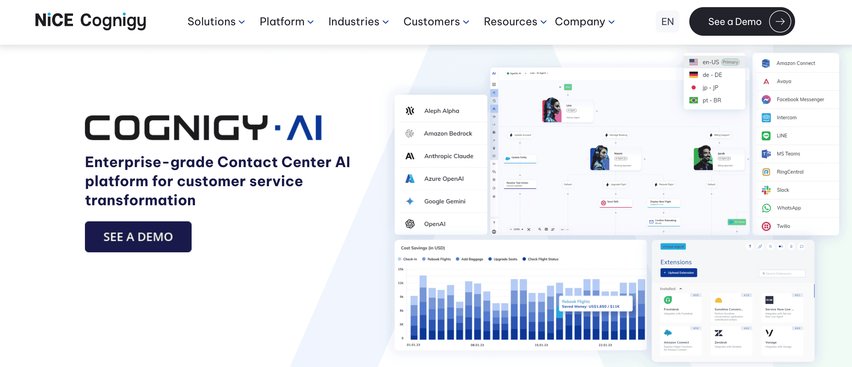 Cognigy remains a dominant force in the enterprise sector, particularly following its integration with NICE. It functions as a centralized orchestration layer, sitting between your contact center and various backend systems to manage complex customer journeys.